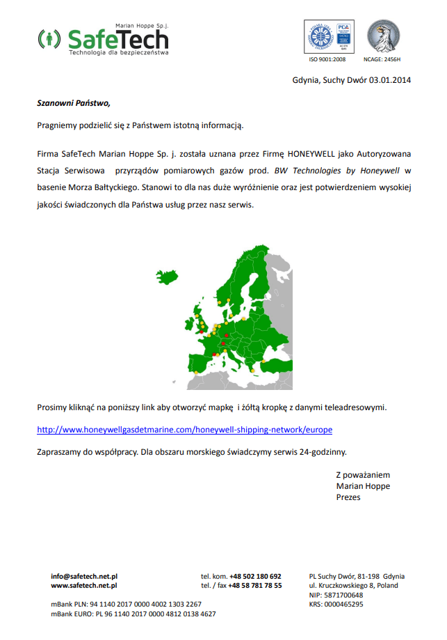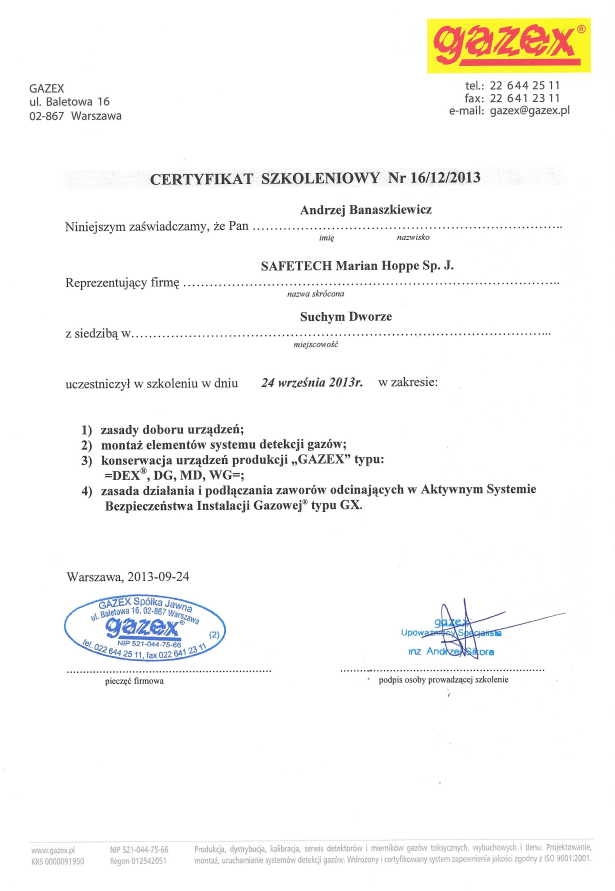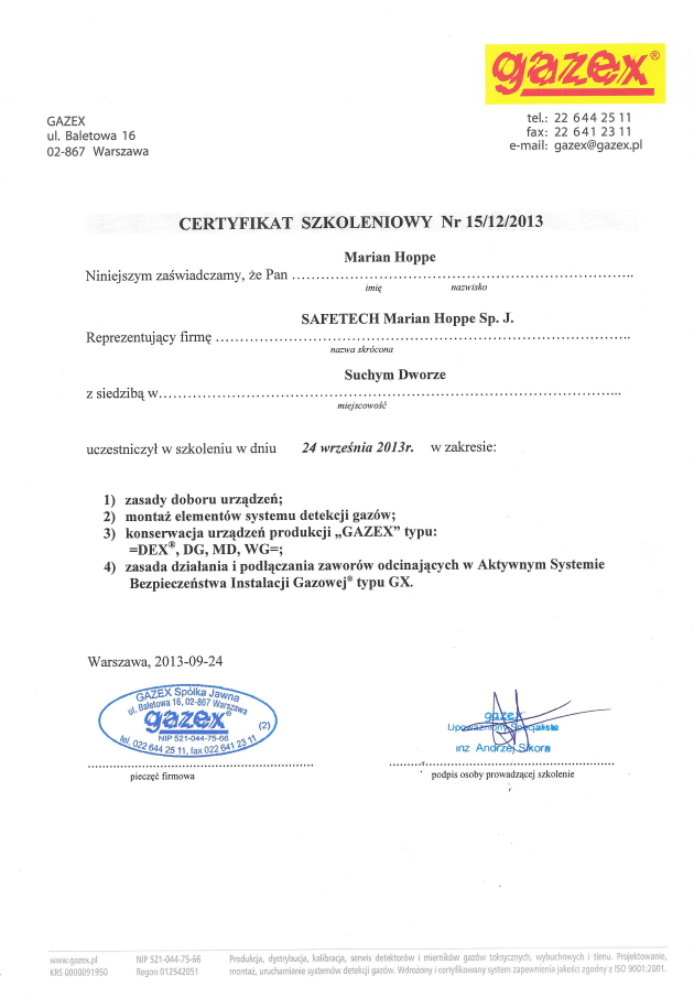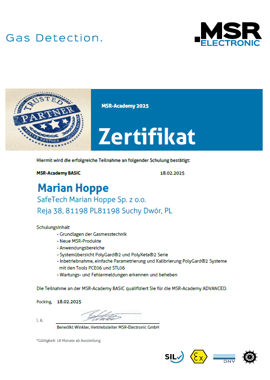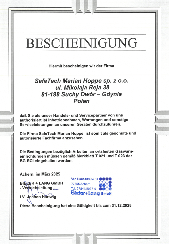 Panowie z serwisu to jedni z najlepiej wykształconych specjalistów w opiece nad detektorami gazów. Posiadają najwyższe uprawnienia nadane przez producentów. Trafia do nich m.in. ponad 1000 urządzeń przenośnych z całej Polski. Do instalacji stacjonarnych jeżdżą bezpośrednio do naszych Klientów.