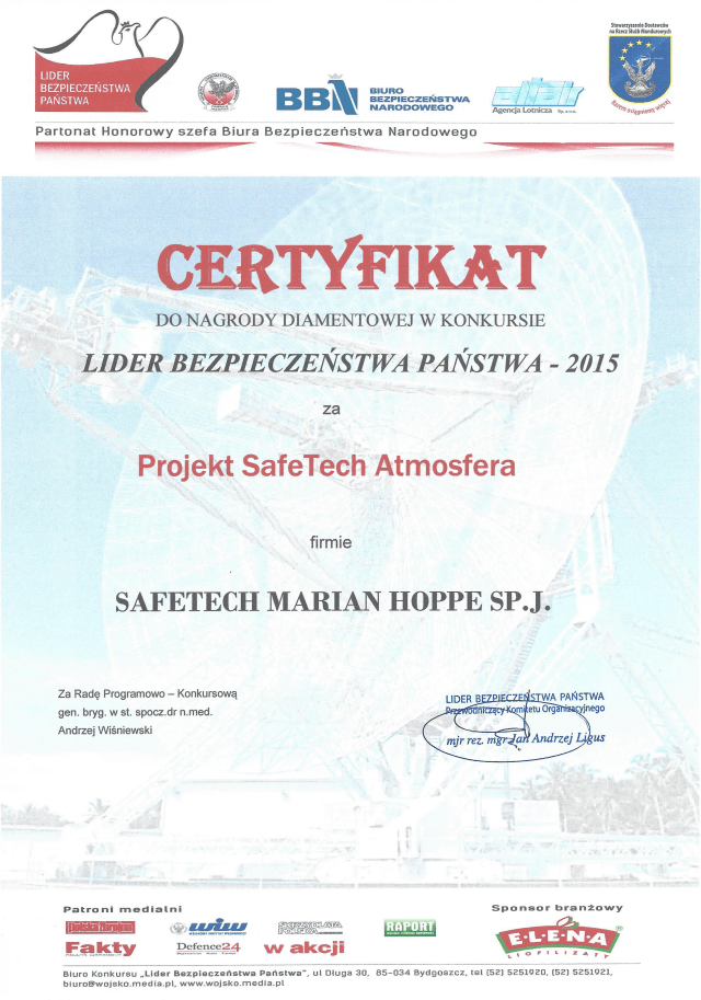 Z pasji powstało wiele autorskich projektów, takie jak SafeTech Atmosfera nagrodzony diamentową nagrodą i statuetką w konkursie Lider Bezpieczeństwa Państwa. Projekt zrewolucjonizował pracę morskich służb ratowniczych. Znaleźliśmy rozwiązanie, aby identyfikować sprawców zanieczyszczeń atmosfery wód przybrzeżnych.